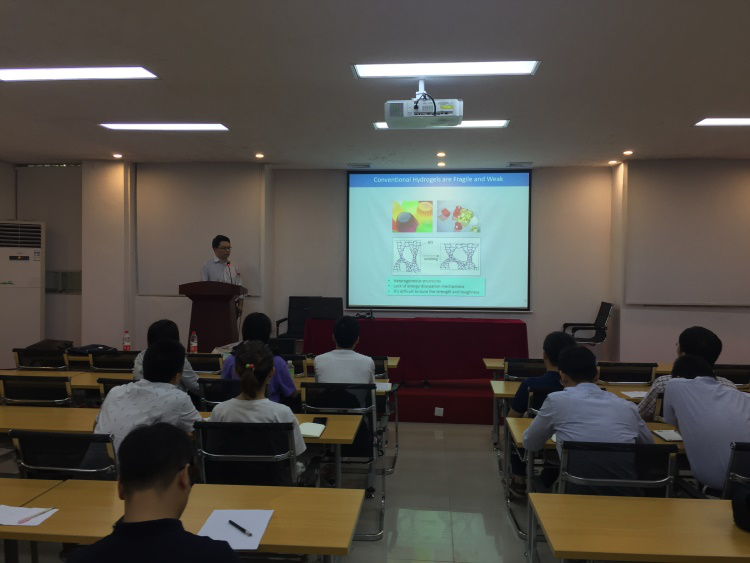 进行学术交流,为全院师生做了《高强韧高分子水凝胶及其智能器件》的精彩报告。
