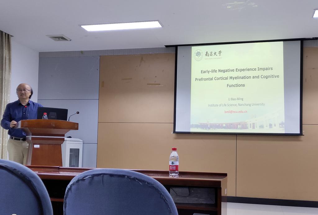 李葆明教授从介绍留守儿童的社会问题,然后介绍了课题组利用构建模拟留守儿童的小鼠模型,观察与检测模型小鼠母婴分离对幼儿小鼠的大脑学习、记忆和社会交往能力等方面的影响,研究发现母婴分离通过减少神经轴突的髓鞘化和树突脊的数量而使得小鼠出现学习与记忆减退,社会交往能力下降等认知功能等障碍。通过这次学术报告,李教授给我们揭示了留守儿童与校园欺凌等负面行为对儿童与青少年的大脑发育产生巨大的负面影响,从而使得他们在学习与记忆和社会交往能力等高级认知功能方面造成功能障碍的分子与细胞机制。
