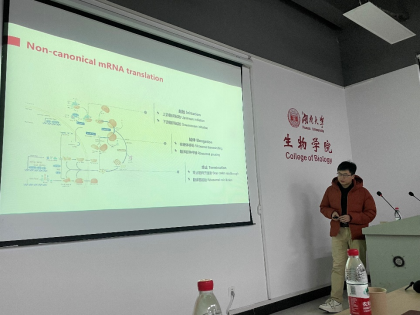 王奕蓉副教授邀请,浙江大学良渚实验室“百人计划”研究员毛圆辉为学院师生开展题为“mRNA noncanonical translation : making sense of translational noise”的学术讲座;本次报告会由王奕蓉副教授主持,我校多名师生参加。