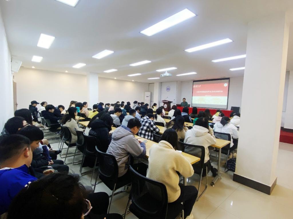 在学院108报告厅举办2022届毕业生就业指导会,会议由辅导员刘浩老师主持,2022届全体毕业生参加了此次会议。
