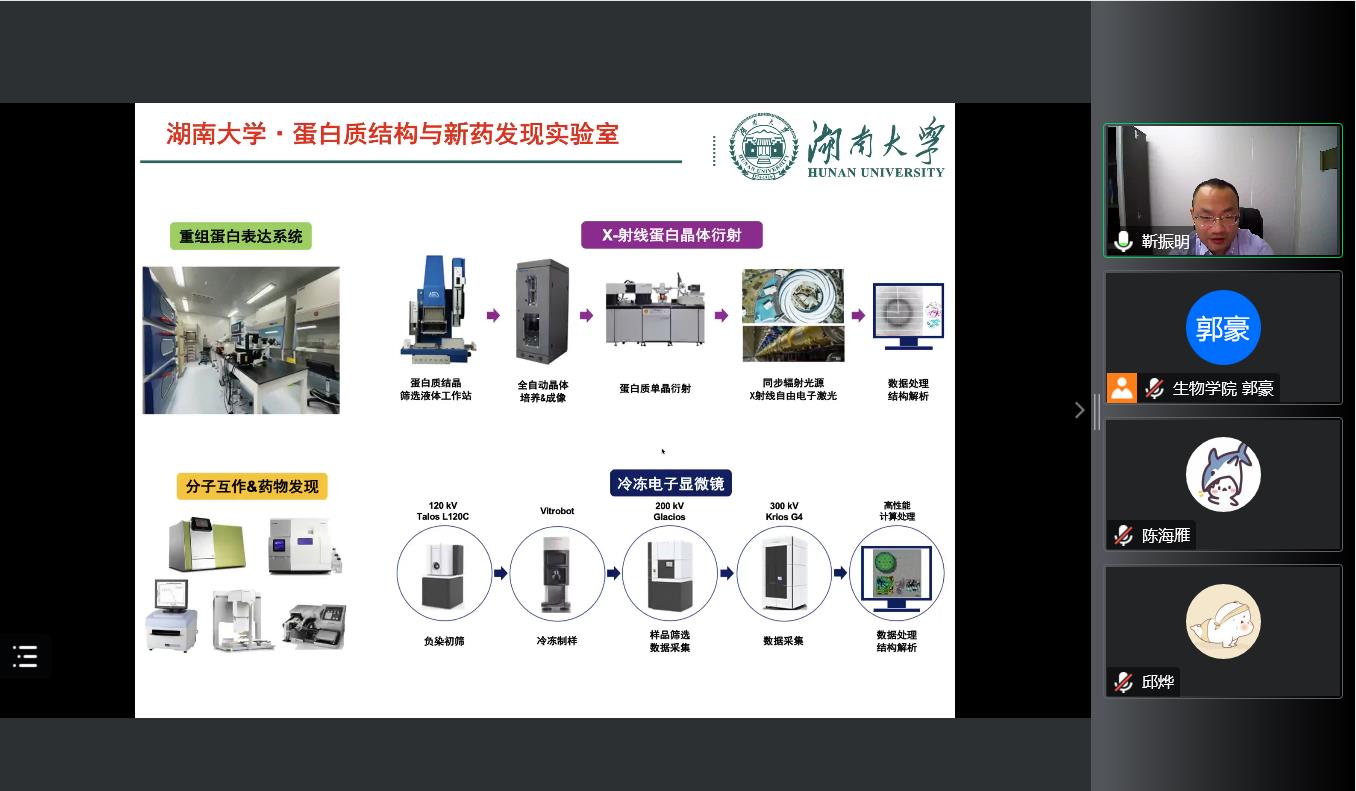 在会议过程中,靳振明老师对结构生物学做出了详细的介绍,针对结构生物学的发展以及结构生物学研究方法及应用做出了系统的阐述。同时对顶通漫画