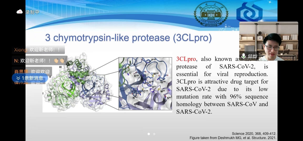 邱烨老师就他目前开展的一些工作进行了简要的介绍,针对病毒蛋白酶与病毒感染进行了详细阐述,从背景、作用机理到目前的一些研究现状都进行了介绍,让我们对病毒感染导致人类疾病有清晰的认识。