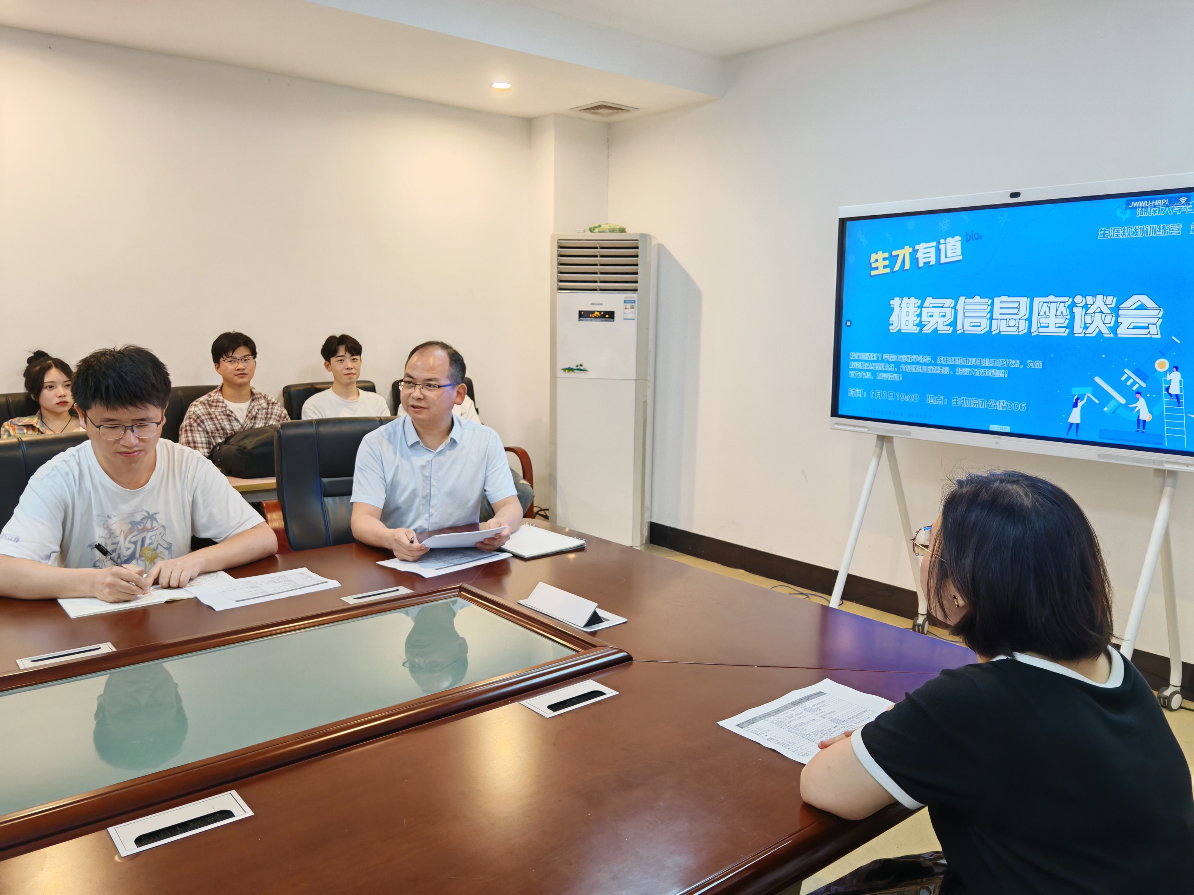邱烨老师、王奕蓉老师分别就如何与意向导师联系、如何准备保研文书材料、如何准备面试问题作答等方面进行了指导。三位老师就同学们提出的面试自我介绍、搜集意向导师科研资料等问题进行了解答。