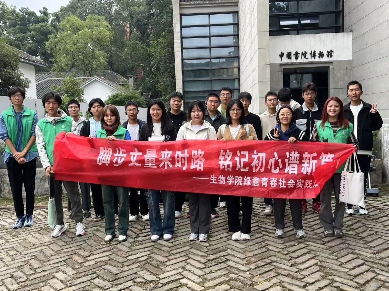 绿意青春实践团在赛前的空余时间带领全体24级新生分班分批次走进岳麓书院,详细讲解岳麓书院楹联、建筑、牌匾、碑刻,切实感受千年文脉的底蕴和魅力。