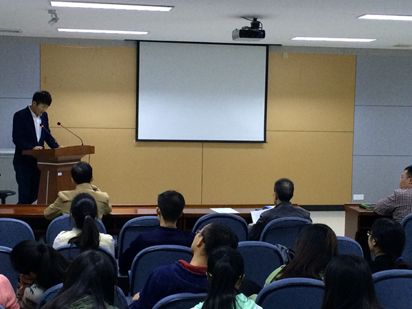 会议包括四项议程:首先,谭宏老师发表讲话,对研管会的性质、职责以及组织机构等情况做了详细介绍,并呼吁大家树立“平台是我家,管理靠大家”的理念;紧接着辅导员胡品老师作了动员发言,鼓励大家要抓住机会参与到研管会中去,多锻炼自己,提升自我各方面能力。