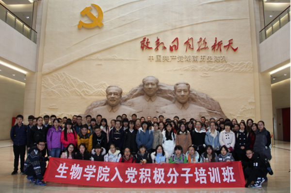 2015年入党积极分子培训班全体学员来到长沙市望城区,到湖南党史陈列馆、雷锋纪念馆参观学习,负责学生党建工作的辅导员胡品和同学们一同参观学习。