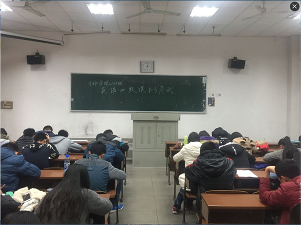 2015年12月的四级考试在12月19日,2015级116名同学中有113位同学报名参加。随着四级考试越来越近了,同学们都积极进行了备考。为了让同学们在考试前感受真实考试的氛围,在考前打一针“强心剂”,在学院领导的大力支持下,为2015级新生复印了2015年6月四级考试真题,113名同学进行模考实战。