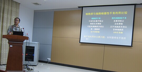 师生进行了题为“油菜隐性核不育分子机理及其在杂种优势中的利用”的学术报告。涂金星博士为华中农业大学植物科技学院和作物遗传改良国家重点实验室教授、博士生导师,主要从事油菜杂种优势利用,植物雄性不育分子机理和植物分子育种研究。主持了973子课题项目,国际合作项目,863项目及国家自然基金项目。在Molecular Breeding,Plant Journal等著名的作物育种及植物学杂志上发表研究论文多篇。