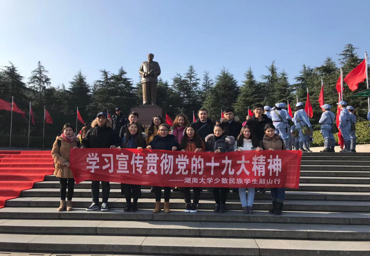 早上7点,所有在参与活动人员在天马学生公寓举行升旗仪式。7点30分,迎着冬日的暖阳,所有人员一同乘车前往主席故居,开启了学习体验之旅。