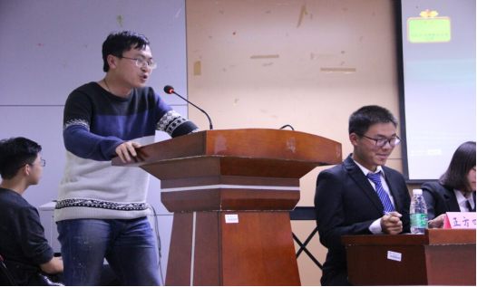 由学院团委、学生会举办的第二届新生辩论赛总决赛在院楼报告厅举行,本次比赛评委为校辩论队指导老师韩笑天、院团委书记谢凤汁、辅导员李小军及院辩论队所有成员。