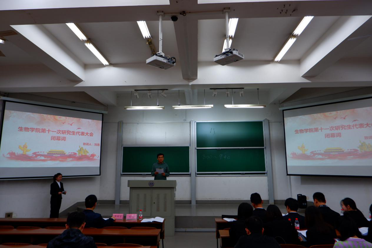 辅导员刘浩老师致闭幕词,希望推选出的第十一届研究生会的新成员不会辜负众望,让顶通漫画