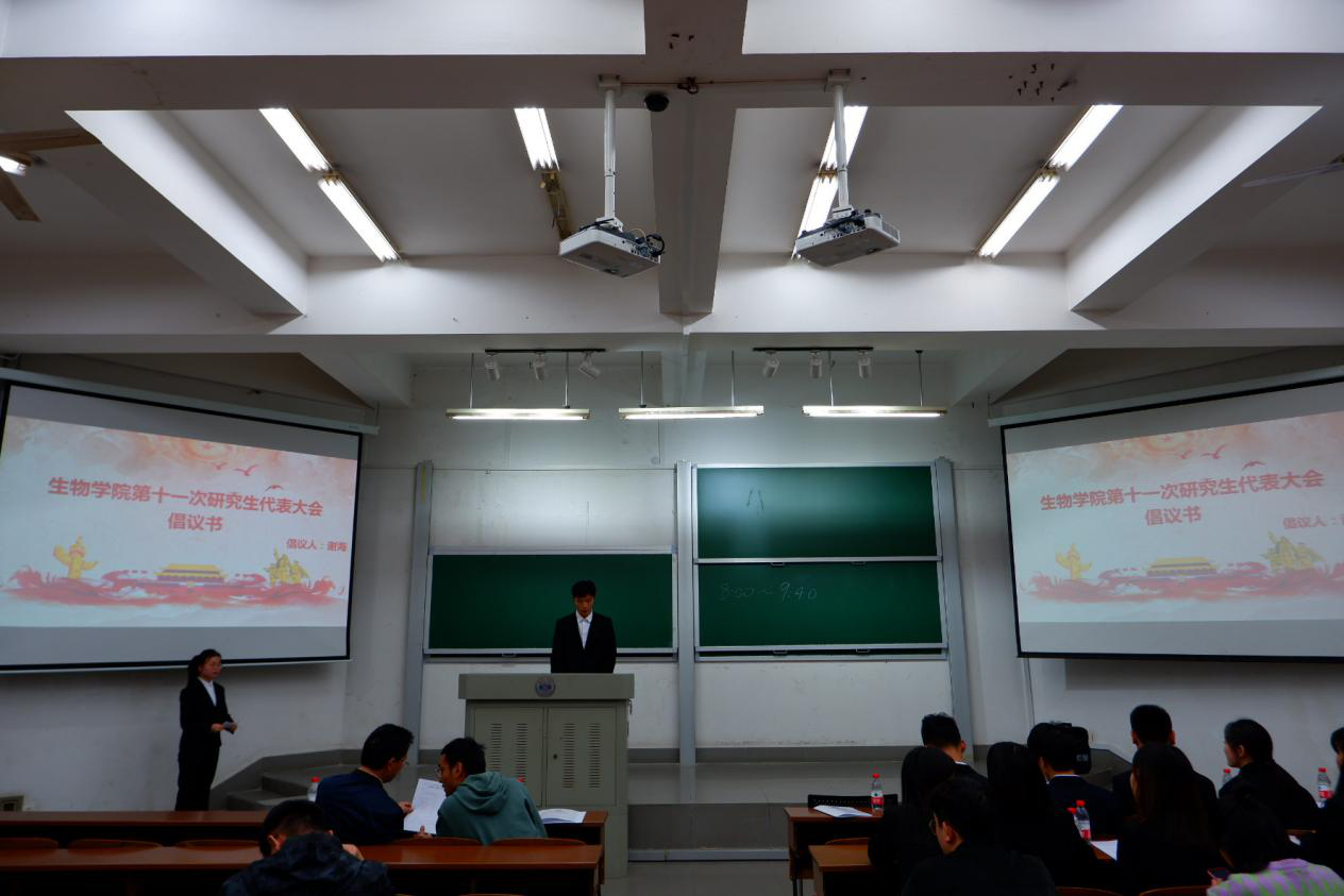 研究生会工作的任务和方向。之后便进行大会选举会议。各年级各班研究生代表进行了民主、严肃的投票选举,经过公正公平的监票计票后,最终主席团的成员有谢海、赵小云、陈大玲;综合管理中心部长丁娜娜;发展服务部部长李洁彬;活动部部长万常俊;新媒体中心部长曹珊珊;调研部部长黄文强;科研创新部部长胡姣。