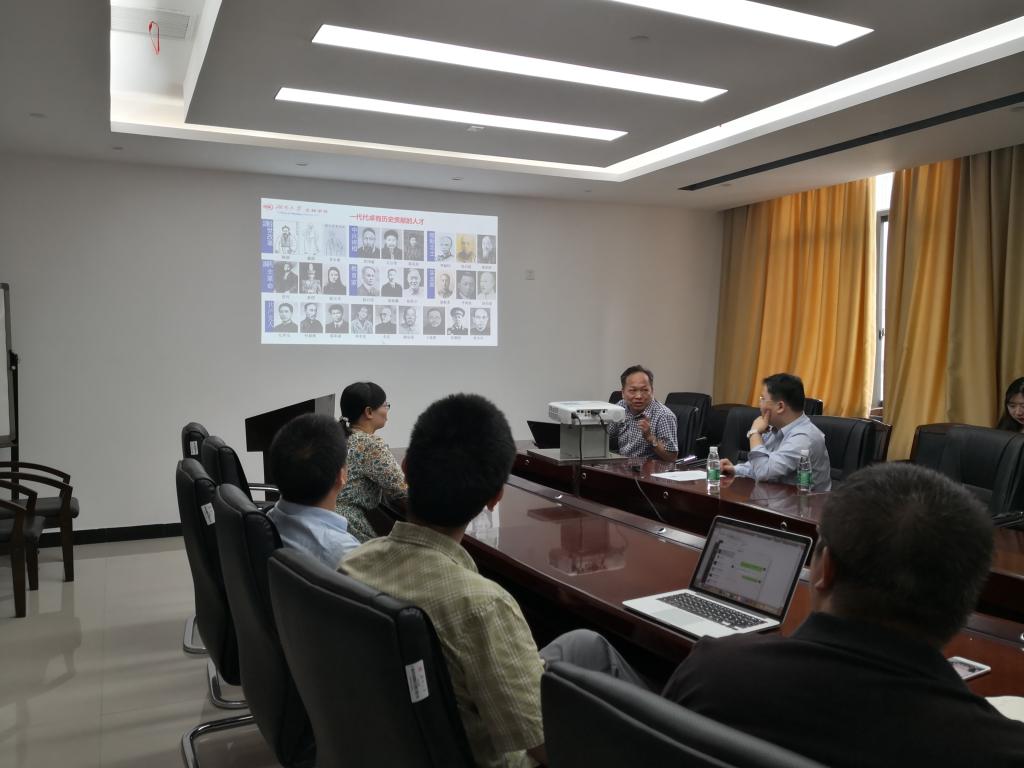 交流会开始,由刘选明教授向崔晓峰研究员就历史人文、学科建设及师资力量等方面介绍了学校及学院的基本情况,并进一步详细介绍了顶通漫画