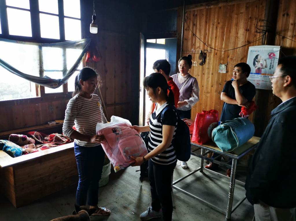 党委组织行政教辅党支部、生物医药党支部和生物技术党支部实地走访慰问白水洞困难农户,为他们带去了学习生活上的急需物品,同时通过实地的走访交流了解农户的实际困难,便于进一步扶贫工作的开展。天公不作美,正值湖南大部阴雨天气,但这挡不住支部成员走访结对帮扶对象的脚步,满载着慰问物资和扶助脱贫的热情,我们出发了。