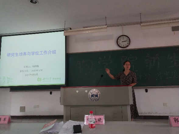 何晓晓介绍了不同办公室职能、研究生培养工作和学位授予工作,并提醒新同学要时刻关注培养计划,保质保量做好学科工作,顺利完成学业,实现自身价值。