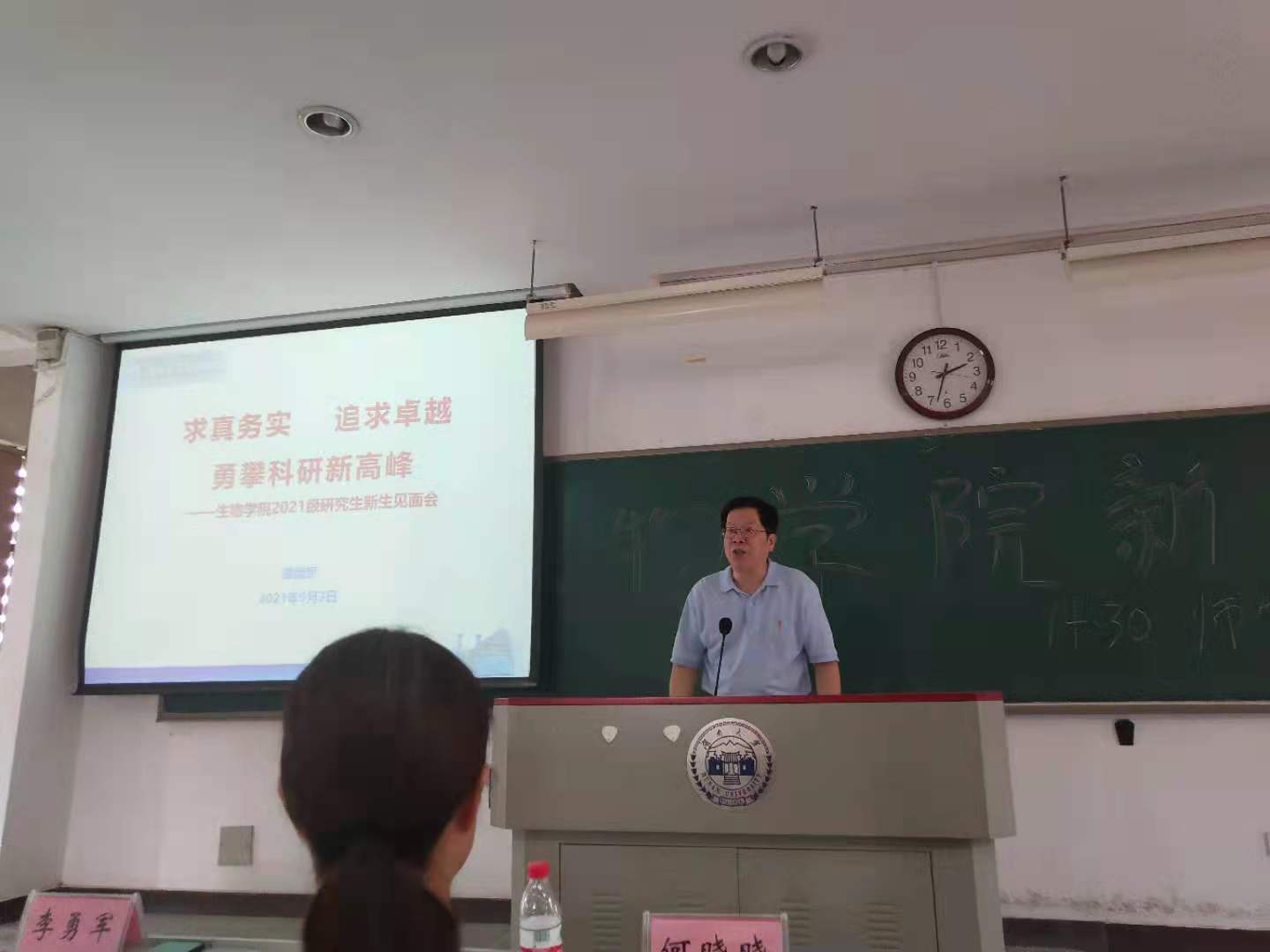 院长谭拥军、副院长何晓晓、副书记陈树芸、创新创业中心主任郭新红、药学系主任徐翔晖、研究生教务秘书彭莉、研究生辅导员刘浩及2021级全体研究生新生。