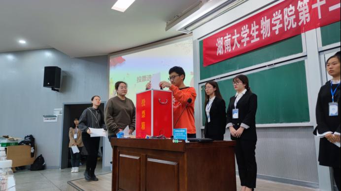 秉持公平、公正、公开的原则,现场的学生代表们在会场工作人员的指引下有序投票,在总监票人袁千智、监票人王国韬、陈琦、查然、高会中的监督下,总计票人、计票人当场清点选票,向大会报告选举工作情况,并宣布了选举结果。