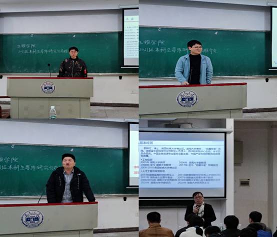 接下来,卓睿导师、徐翔晖导师、岳磊导师、郭新红导师依次上台分享了自己的求学经历及工作经验,大致地介绍了部分受导同学情况,导师们还细致地介绍了自己的研究方向以及目前在该领域取得的一些成就。紧接着上台的依次是张春辉导师、郑何平导师、赵大鹏导师,他们发表了对自己所在研究领域的专业看法,并且分享了一些就业方面的经验。其中张春辉老师简述了自己在耶鲁大学就读的部分经历,郑何平老师告诉大家实验室的工作很繁忙,但是也充满乐趣,能学到很多东西。最后,导师们都热烈欢迎同学们加入自己的实验室。