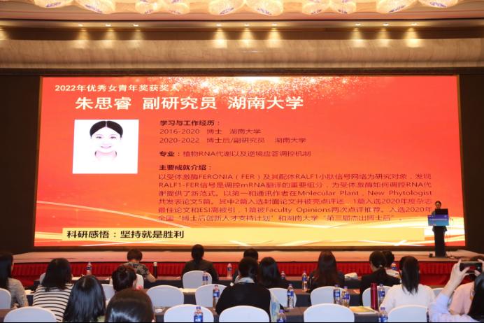 “优秀女青年奖”是中国植物生理与植物分子生物学学会于2019年在植物生物学女科学家学术交流会上设立。目的是为奖励取得创新研究成果的青年女性学者。该学会每年选拔10位左右青年女学者,旨在激励植物生物学女性青年科研工作者潜心研究、创新发展。