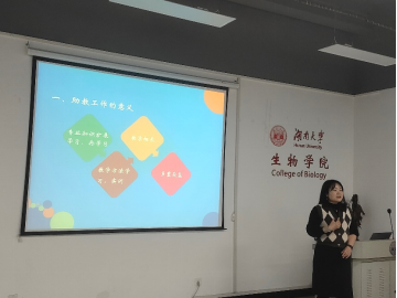 实验课具体实际,向同学们介绍了助教工作的主要内容以及如何做好实验课助教培训工作。最后,黄老师讲述了实验课助教工作的注意事项,如人身安全、试剂安全、设备安全、水电安全等问题。