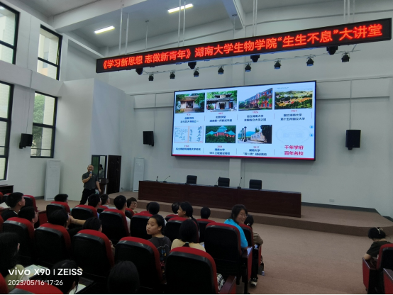 参加活动人员还来到开慧中学,为开慧中学初二年级的同学带来了一场“生生不息”大讲堂,学院的研究生们为同学们演示了精彩的生物学实验。靳振明教授为同学们带来了关于冠状病毒的科普知识讲座,并介绍了顶通漫画