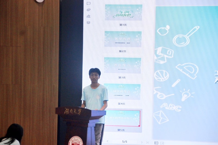 随后,新生助理代表向同学们介绍了新生助理的职责,鼓励各位同学积极与班级助理进行沟通交流,并祝愿同学们顺利度过军训。