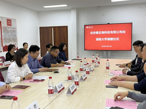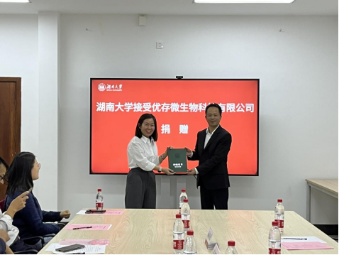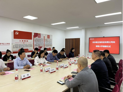 学院院长谭拥军、党委书记陈艳会见优存微生物科技有限公司董事长张志忠一行。优存微生物科技有限公司董事方幼辉、师为正,优存微生物科技有限公司总经理肖新煌,校发展联络处副处长左鑫,院党委副书记邹志成,院生物医学系系主任葛行义、副系主任邱烨,院办公室主任罗丹,校教育基金会干事龚楚,院研究生辅导员冉晓芬出席捐赠仪式。仪式由学院党委书记陈艳主持。