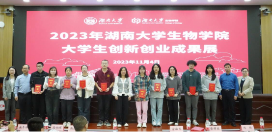 成果展示专设了“展览区”,展示了学院学生在生物学科各领域的研究成果:2022年全国大学生生命科学竞赛全国一等奖3项(学院历届最多)、2022年iGEM国际基因工程机器大赛银奖(湖大首次)、2023年湖南省第六届“雷锋杯”青年志愿服务项目大赛金奖(湖大唯一),在大学生“互联网+”创新创业大赛中荣获国家级奖项3项等优秀奖项。