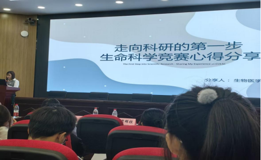 副教授胡小晓为同学们带来“科教协同”和“以赛促学”国家级大学生创新性实验计划项目的经验谈。她从科学竞赛准备和生物医学研究两个模块讲述了大学生生命科学竞赛的参赛事宜及研究课题,并从参赛流程、注意事项、具体案例等方面为同学们讲解了参赛的具体内容。