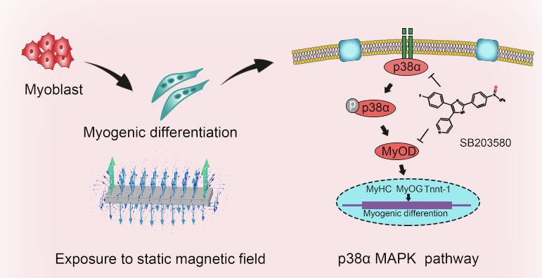 物理刺激,包括磁刺激和机械刺激,在细胞反应的调节中起着重要的作用。谭志凯团队在“Regulated skeletal muscle regeneration using 3D printed tissue repair patch”一文中,利用E-jet 3D打印技术制备了一种新型组织再生贴片,结合静态磁场,通过机械和磁刺激调控骨骼肌再生。该方法能诱导成肌细胞形成定向的多核肌管并通过激活p38 MAPK途径启动肌原性分化,是一种能够快速诱导受损骨骼肌组织再生的技术。相关研究成果发表在杂志Bio-Design and Manufacturing上,硕士研究生王小成为论文第一作者,谭志凯教授为该论文的通讯作者。