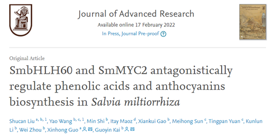 郭新红教授与浙江中医药大学药学院开国银教授团队合作在Journal of Advanced Research在线发表了一篇题为SmbHLH60 and SmMYC2 antagonistically regulate phenolic acids and anthocyanins biosynthesis in Salvia miltiorrhiza的研究论文,解析了MeJA 响应性 bHLH 转录因子提高丹参中生物活性化合物酚酸和花青素生物合成的分子机制。