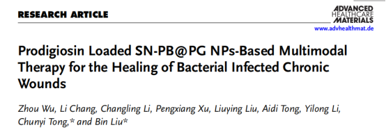 Zhou Wu, Li Chang, et al. Prodigiosin Loaded SN-PB@PG NPs-Based Multimodal Therapy for the Healing of Bacterial Infected Chronic Wounds. Advanced Healthcare Materials, 2025, DOI: 10.1002/adhm.202405100.