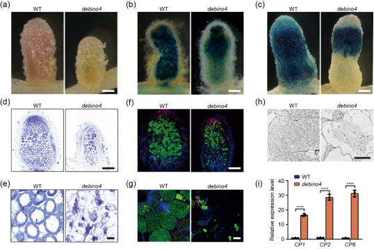 有趣的是,本研究发现,DEBINO4基因几乎只在根瘤非侵染细胞中表达,表明非侵染细胞在根瘤碳氮代谢中有着重要功能。本研究也发现DEBINO4活性受保守的磷酸烯醇式丙酮酸羧化酶激酶PPCK1和PPCK2调控,PPCK1和PPCK2能够和DEBINO4直接互作。CRISPR/Cas9双敲除PPCK1和PPCK2后根瘤表现出和debino4类似的早衰表型。更重要的是,PPCK1也是在根瘤非侵染细胞特异表达。